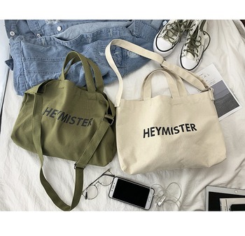 Хлопковая Холщовая Сумка-тоут на плечо с напечатанным логотипом, внешний карман и многоразовые сумки на молнии с буквенным рисунком